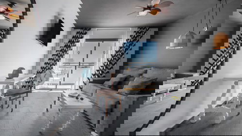 One-Bedroom Apartment with kitchenette, refrigerator, Kitchenware, microwave, full bathroom, air conditioning, satellite TV, sitting area and balcony.