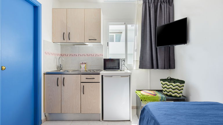 Einzelstudio sind ausgestattet mit Klimaanlage, Mikrowelle, Safe, Satelliten-TV, Telefon, Komplettem Badezimmer, Kitchenette und mini-Kühlschrank.