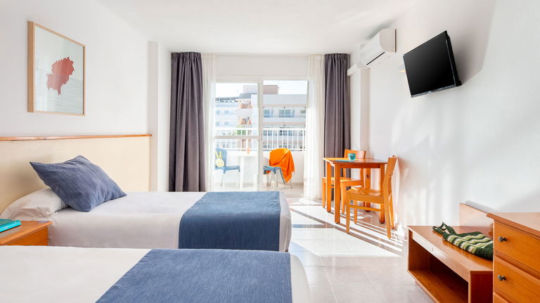 Studio equipped with kitchenette, mini-fridge, microwavwe, full bathroom, air conditioning, satellite TV, telephone and balcony.