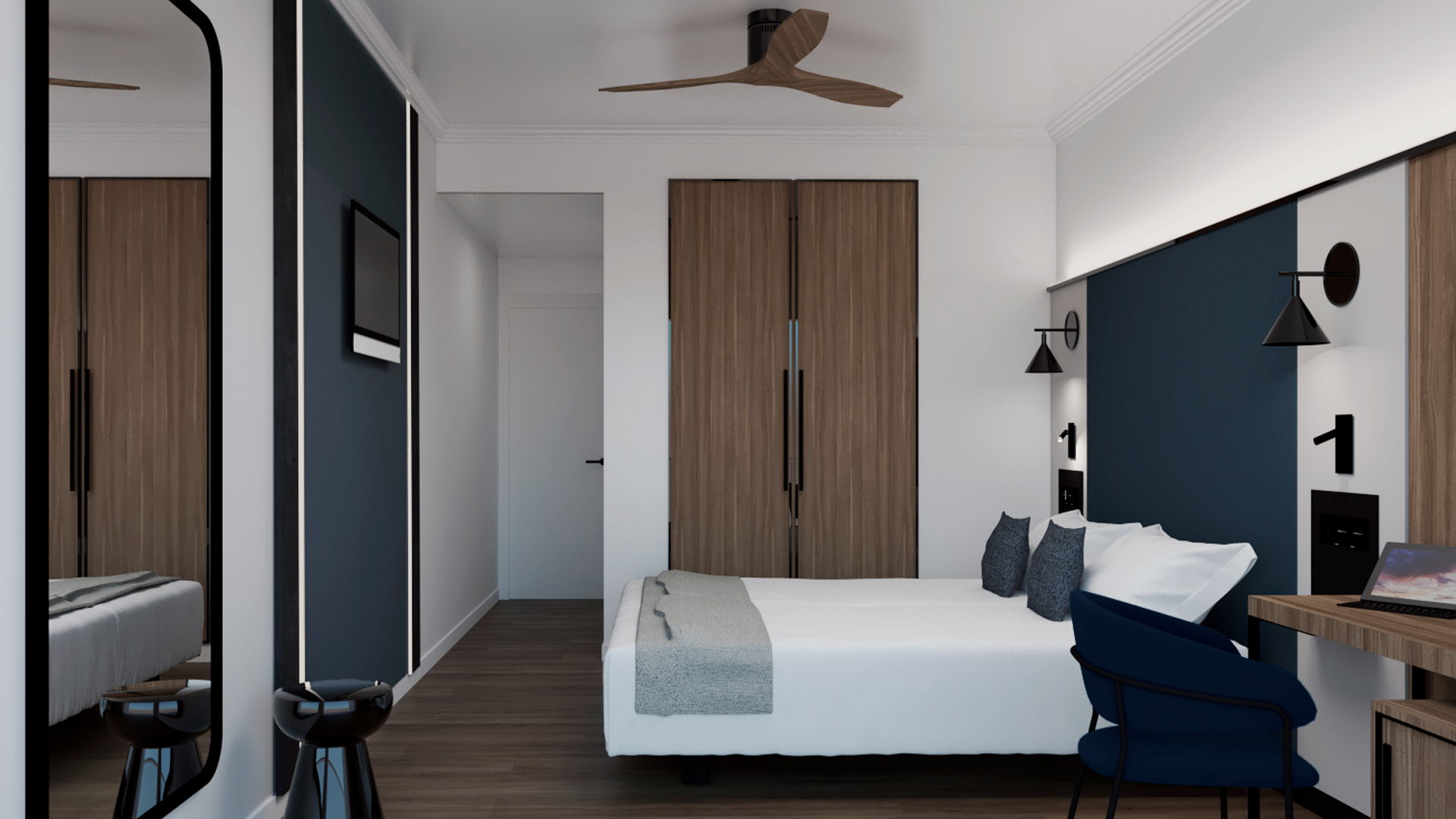 Twin Room with air conditioning, full bathroom, telephone and satellite TV.