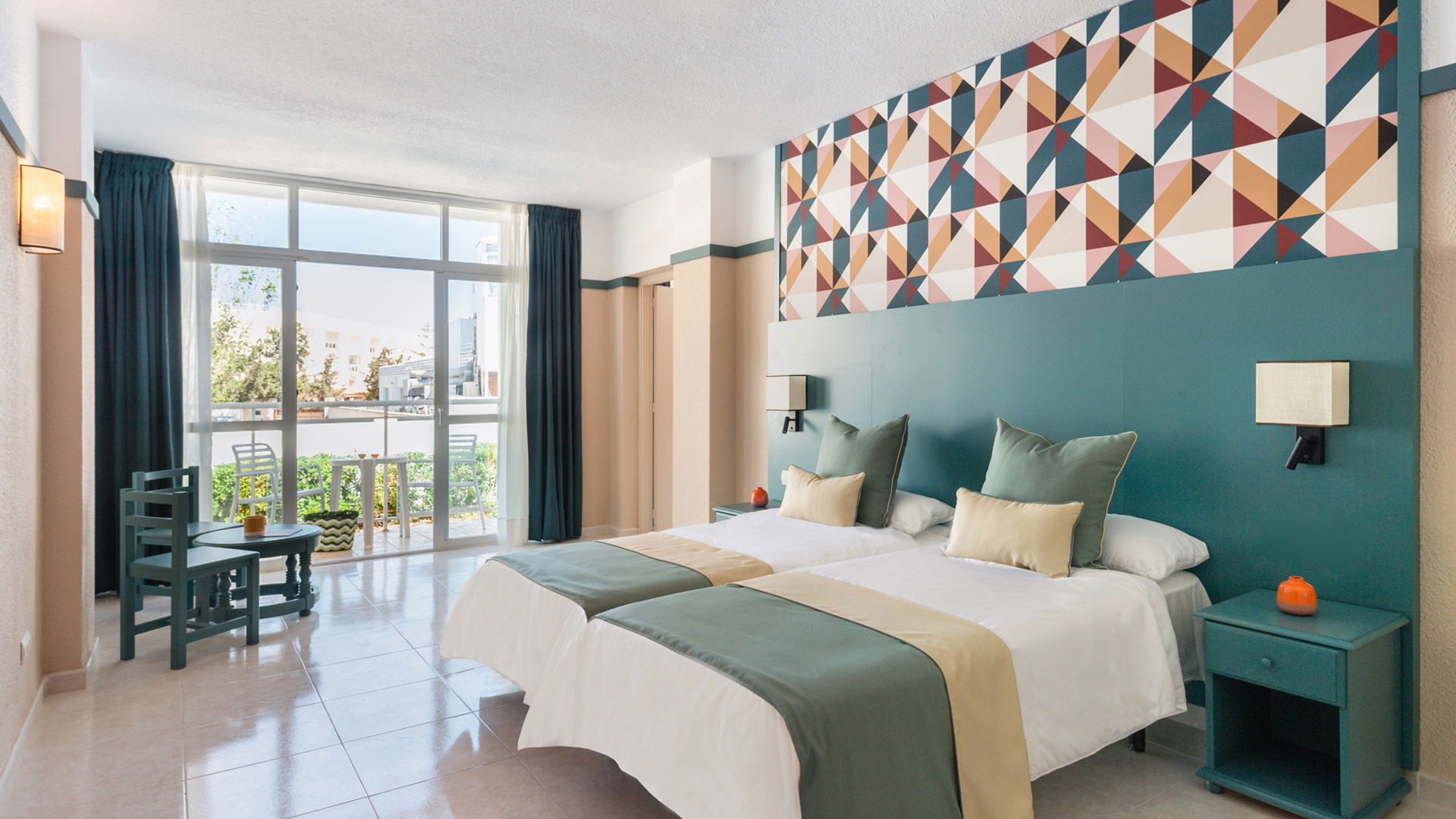 The Twin is a functional and simple room for those looking for comfortable accommodation and good value for money. It is fully equipped with fridge, microwave, kettle, bathroom, satellite TV, telephone, air conditioning, safety-box and balcony.