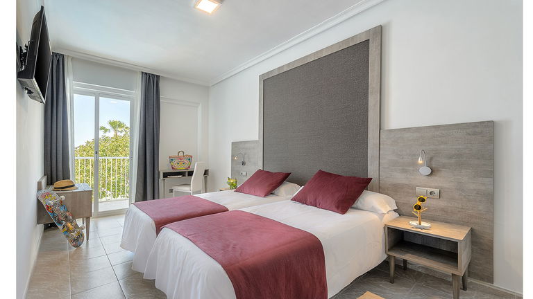 Twin Rooms have air conditioning, complete bathroom, satellite TV, mini-fridge, safe, telephone and balcony.