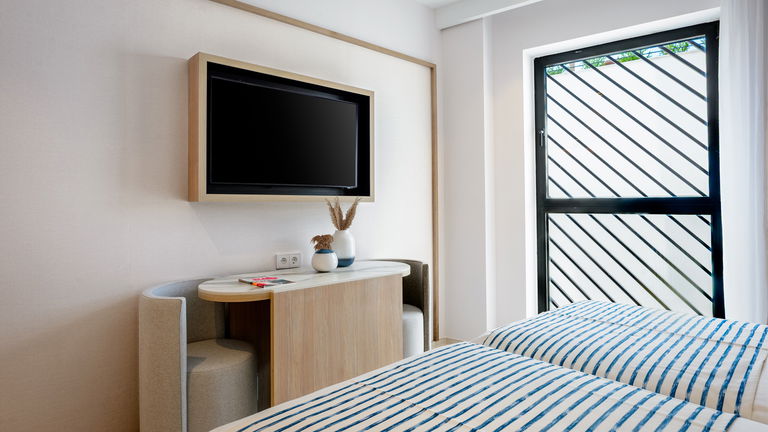 All the rooms have complete bathroom with shower, hairdryer, air conditioning, telephone, satellite TV, safety box, Wi-Fi and minibar. Without balcony