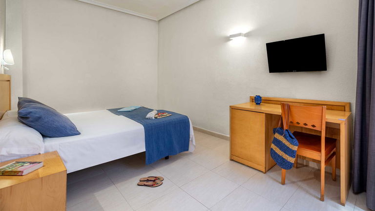 La Habitación individual del hotel ofrece confort a un precio inmejorable sin renunciar a todos los servicios y equipamientos. Cuentan con aire acondicionado, baño completo y secador de pelo, TV de plasma con vía satélite, caja fuerte y teléfono; además de confortables colchones que aseguran su descanso.