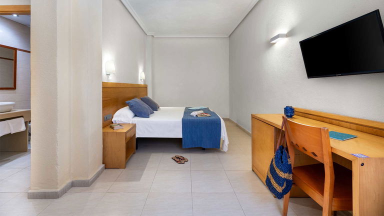 Gracias a la inmejorable localización del hotel, las habitaciones tienen extraordinarias vistas a la bahía de San Antonio. Ideales para los que despertarse junto al mar sea requisito indispensable para su estancia. Todas las habitaciones cuentan con aire acondicionado, baño completo con secador de pelo, TV de plasma con vía satélite, caja fuerte, teléfono y balcón; además de confortables colchones que aseguran su descanso.