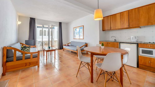 Apartamentos con climatizador,1 dormitorio con cama matrimonial, 1 dormitorio con 2 camas twin, y 1 dormitorio con 1 cama individual, 2 baños completo con bañera y secador de pelo, kitchenette, TV y teléfono. Una mezcla de estilos clásico moderno, funcionales y con todo lo necesario para tu estancia en Menorca.