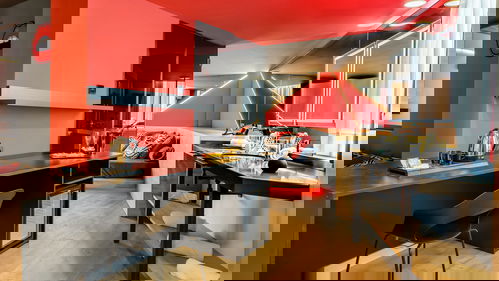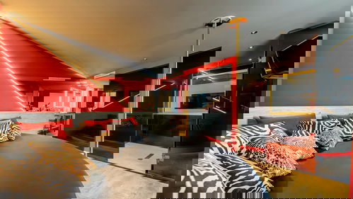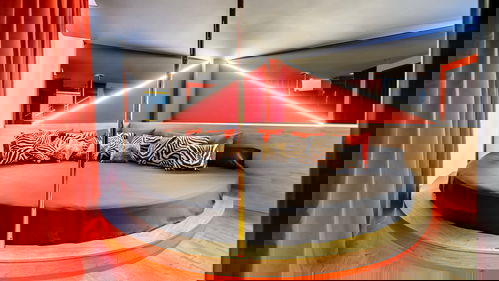 Party room, es un espacio sublime en el que fantasear. Con una cama King Size de 8 m2, te hemos preparado un surtido gamberro, divertido y picante que solo se puede experimentar en primera persona. Además cuenta con baño completo con ducha, aire acondicionado, smart TV, minibar, equipo de sonido, barra de pole dance y balcón con tumbonas.