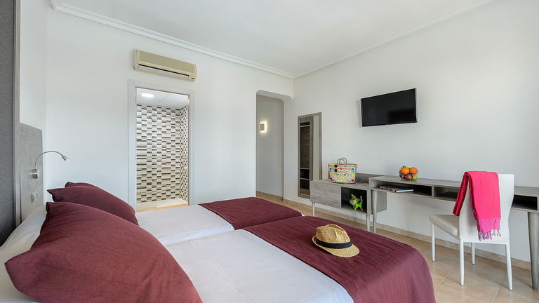 Toutes les chambres disposent de climatisation, salle de bain complète, terrasse, TV par satellite, mini réfrigérateur, téléphone, coffres-forts et terrasse avec vue sur la piscine