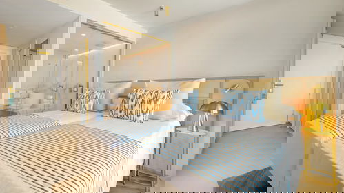 Chambre Lits Jumeaux ont une salle de bain complète avec douche , un sèche-cheveux, air conditionné, téléphone, télévision par satellite, un coffre-fort, wifi, minibar et balcon.