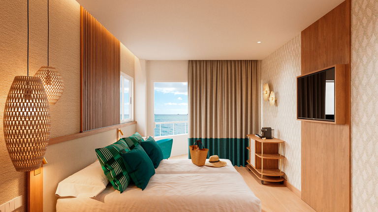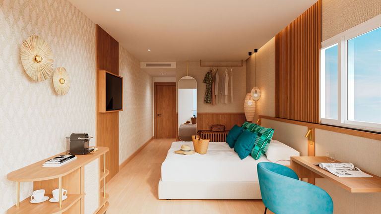 Le camera Superior doppia con bagno con doccia, asciugacappelli, aria condizionata, telefono, TV satellitare, cassaforte, minibar e balcone con vista spettacolare sul mare .