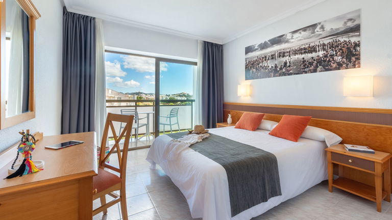 Dubbelkamer met dubbel bed hebben airconditioning, kluisje, badkamer met badkuip, satelliet-tv en balkon.