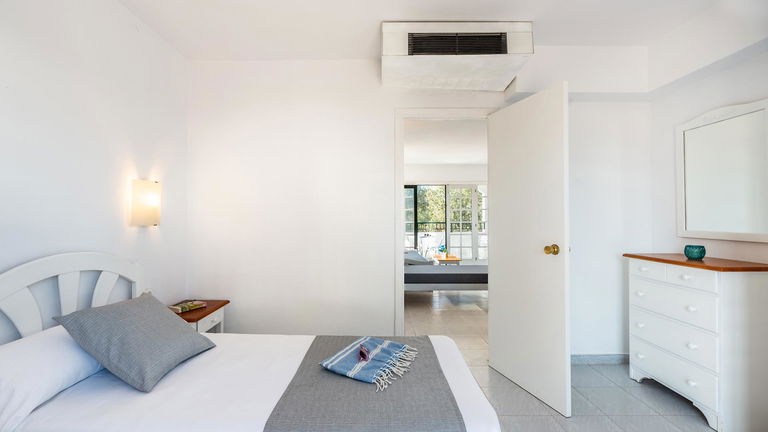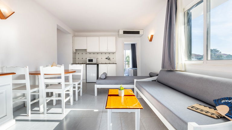 Met een design dat doordrenkt is van mediterrane sferen en met een slaapkamer met tweepersoonsbed en een slaapkamer met twee eenpersoonsbedden, woonkamer met slaapbank, uitgeruste keuken, koelkast, magnetron, televisie, airconditioning, gratis wifi, gerenoveerde badkamer met douche en balkon of terras met uitzicht.