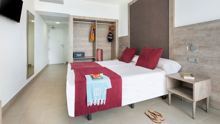 De Superieure twinkamer Vista Mar, met gerenoveerde meubels, biedt u een goed onderhouden verblijf dat rust en comfort garandeert. Vanaf het balkon kunt u genieten van een spectaculair uitzicht over de baai van San Antonio en van de beroemde zonsondergang in het bijzonder.