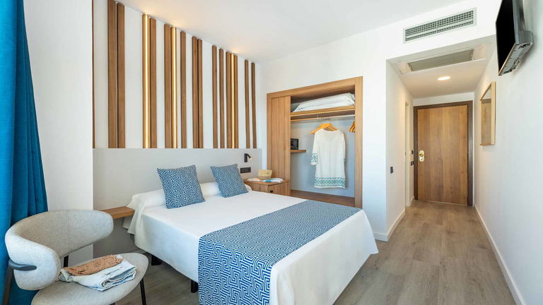 Alle Individuele kamers hebben een complete badkamer mit badkuip, haardroger, airconditioning, telefoon,32'-TV, gratis WIFI en een balkon met zicht op zee.