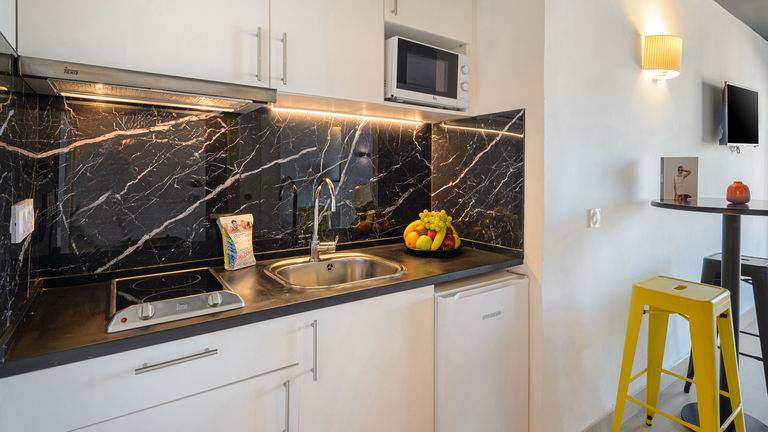 Studios zijn samengesteld uit airconditioning, satelliet-tv, voorzien van complete badkamer, kitchenette, koelkast, Micro-oven en balkon.