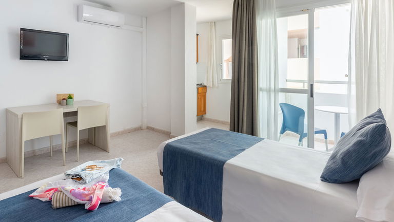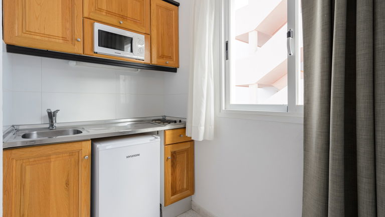 Deze studio heeft airconditioning, telefoon, een satelliet-tv, kitchenette, koelkastje en een magnetron, eigen badkamer en een terras.