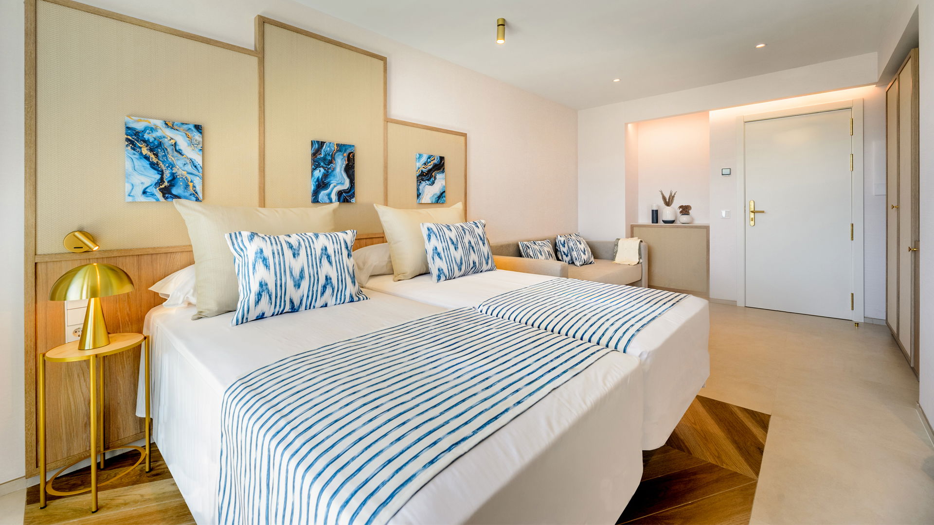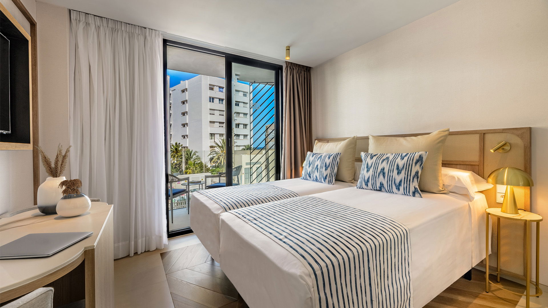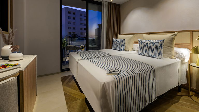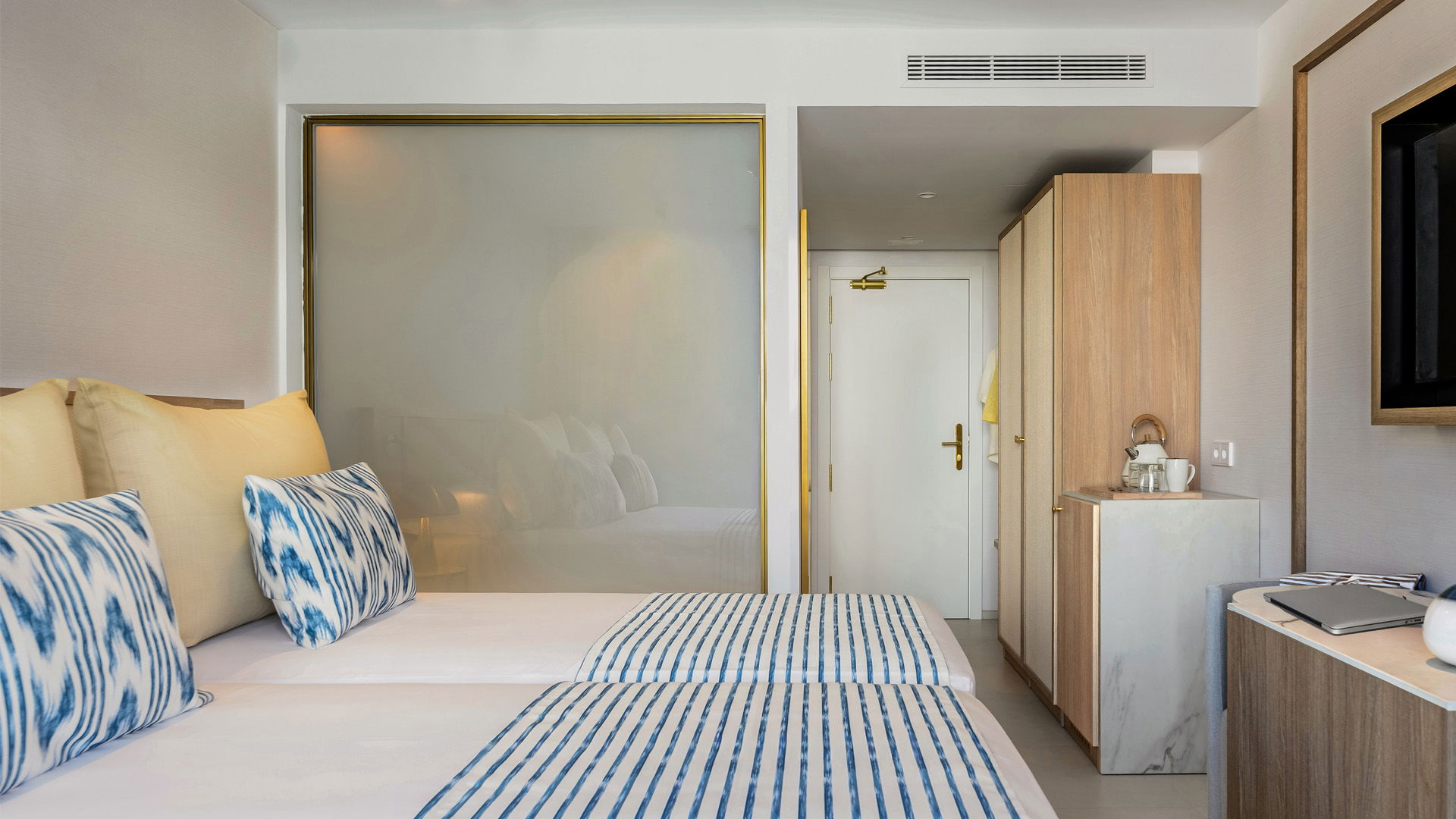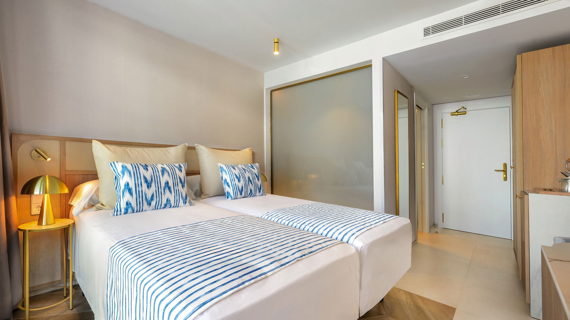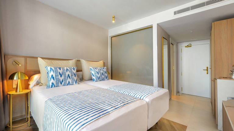 De twin room beschikt over een volledig uitgeruste badkamer met douche, haardroger, airconditioning, telefoon, satelliet-tv, kluisje, wifi, minibar en een balkon met uitzicht op het zwembad.