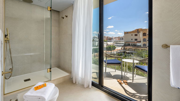 De Junior Suite beschikt over een slaapbank en een grote volledig uitgeruste badkamer met douche, haardroger, airconditioning, telefoon, satelliet-tv, kluisje, wifi, minibar en een balkon.