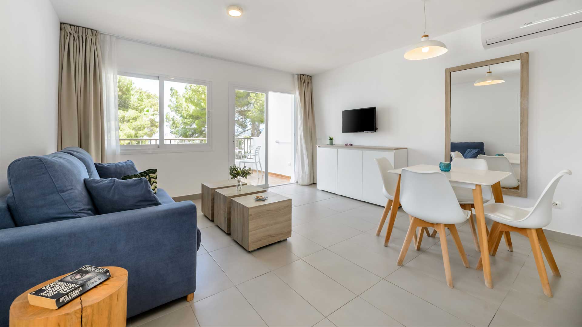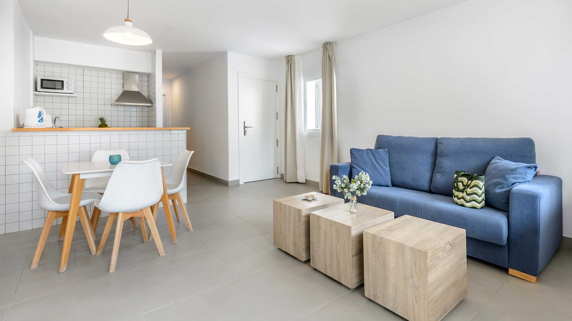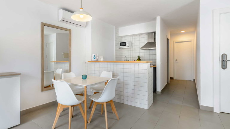 Met 35 m2 is ons appartement een klassieker van comfort. Beschik over alle noodzakelijke elementen om uw vakantie op Ibiza onvergetelijk te maken en te genieten van de diensten van een hotel. Al onze appartementen zijn voorzien van de volgende apparatuur.