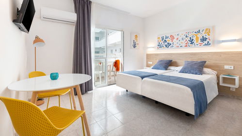 De studio's beschikken over 2 eenpersoonsbedden en zeezicht. Ze zijn bovendien uitgerust met airconditioning, een kluis, een volledig ingerichte keuken met kookgerei, een koelkast en een balkon en uitzicht op zee