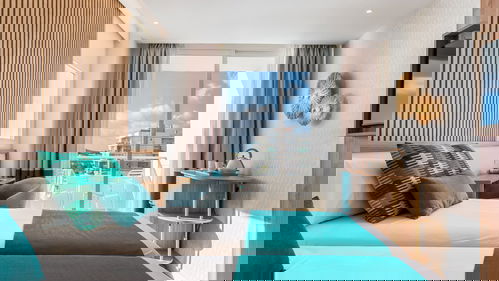 Superior Tweepersoonskamer hebben een badkamer met douche, haardroger, airconditioning, telefoon, satelliettelevisie, kluisje, minibar en een prachtig terras met uitzicht op zee..